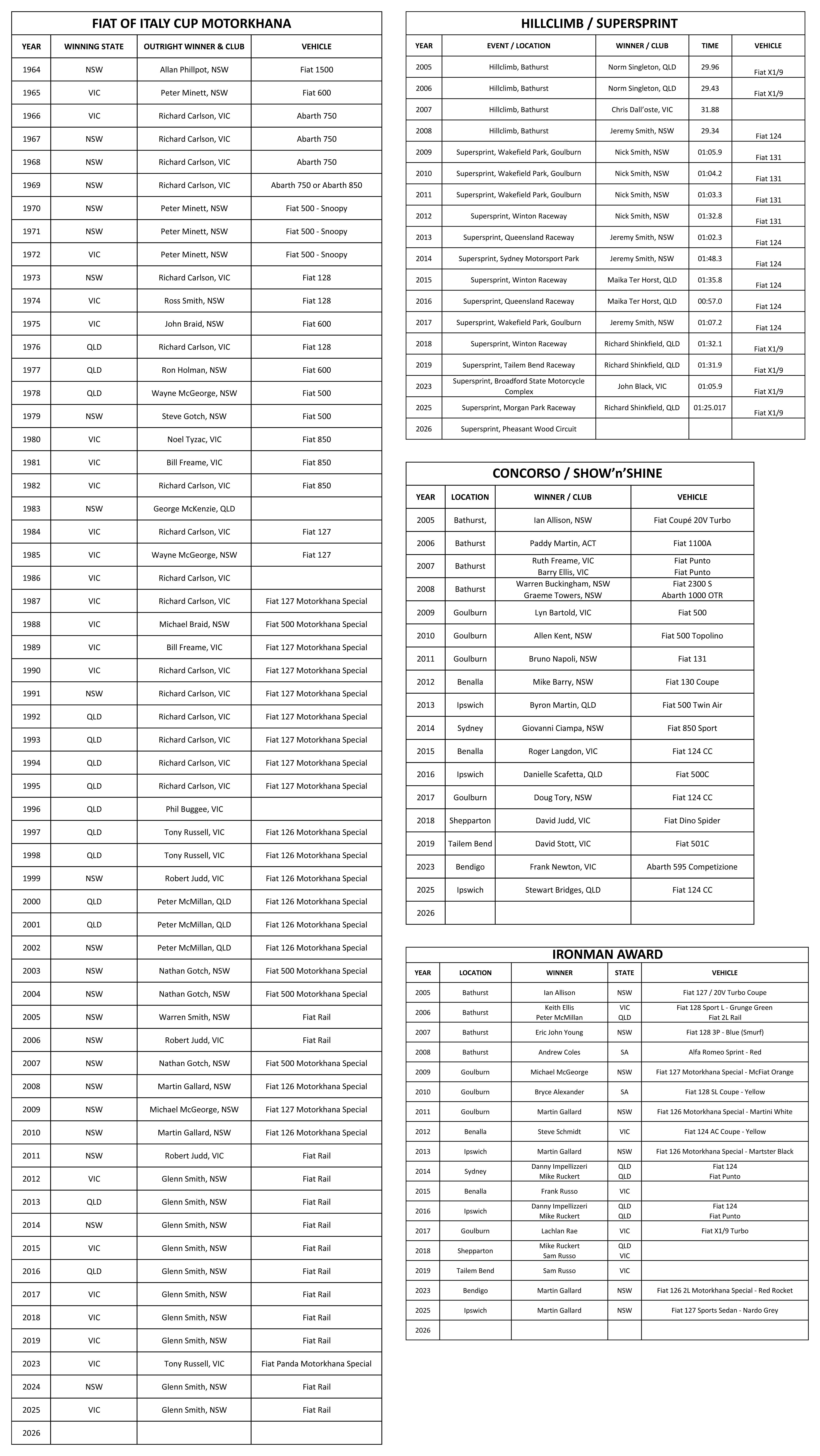 Not sure about something, don’t hesitate to reach out to fiatnationals@yahoo.com.au for clarification before submitting your entry form.